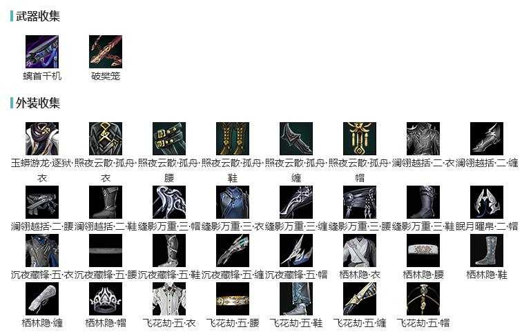 盒子:[红如归盒(缺发型), 黑如归盒(缺发型), 白如归盒(缺发型), 龙吟盒, 莲台盒, 柿盒, 云间盒, 咩盒, 扇盒, 不良人盒(缺背挂), 白幽昙(豪)(缺发型), 八七盒, 白龙隐(豪)(缺发型), 梦盒, 九七盒(缺发型), 兰陵盒, 白蛇盒(缺发型), 镰刀盒, 人间夜色盒, 燕月盒, 瓷盒, 黑月下(豪), 蓝陇西(豪)(缺发型), 蓝寻香(豪)(缺发型)]