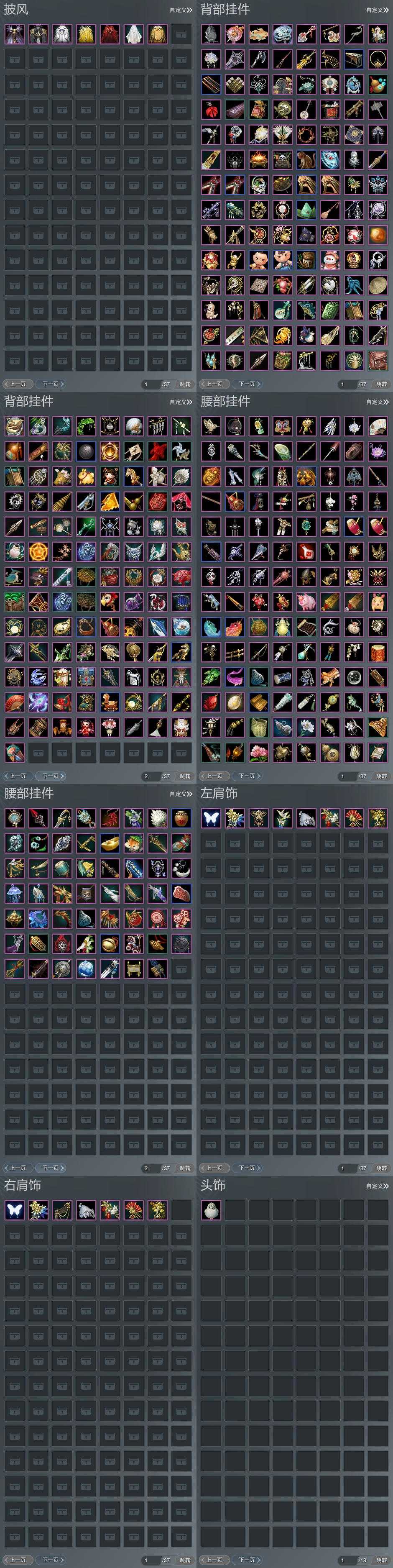 【肩饰】8左,7右,[觅花踪·碧空·左, 霜岱应元·左, 云中雪霁·左, 剑歌惊月·左][觅花踪·碧空·右, 霜岱应元·右, 云中雪霁·右, 剑歌惊月·右]