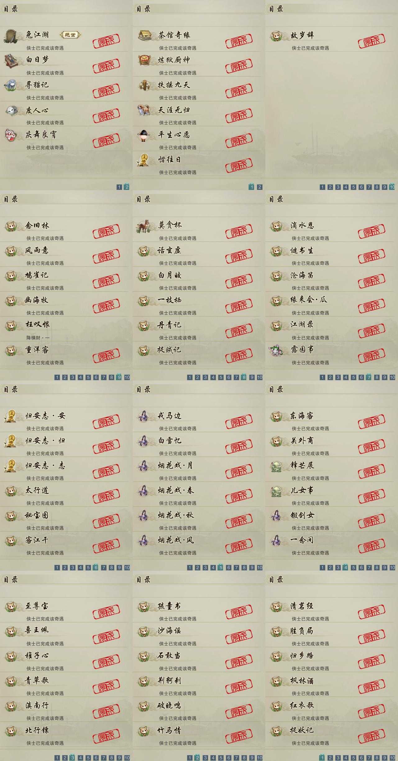 【奇遇】11个[白日梦, 天涯无归, 兔江湖, 平生心愿, 惜往日, 扶摇九天, 寻猫记, 茶馆奇缘, 庆舞良宵, 炼狱厨神, 度人心]