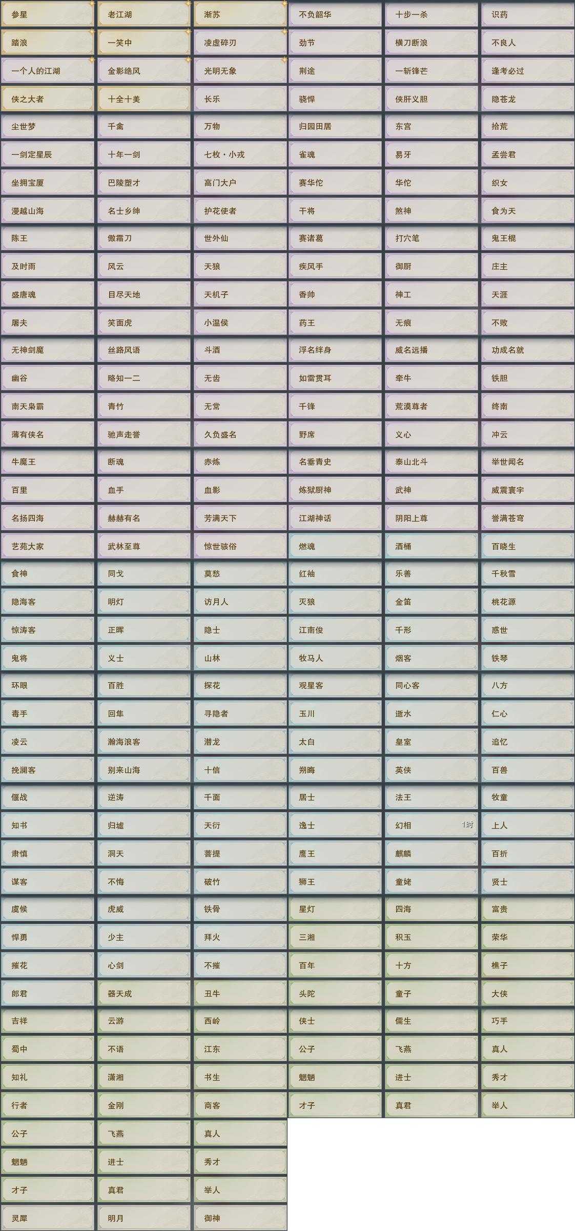 【奇珍】55个[枫林酒, 红衣歌, 归乡路, 胜负局, 孩童书, 清茗经, 捉妖记, 至尊宝, 石敢当, 稚子心]