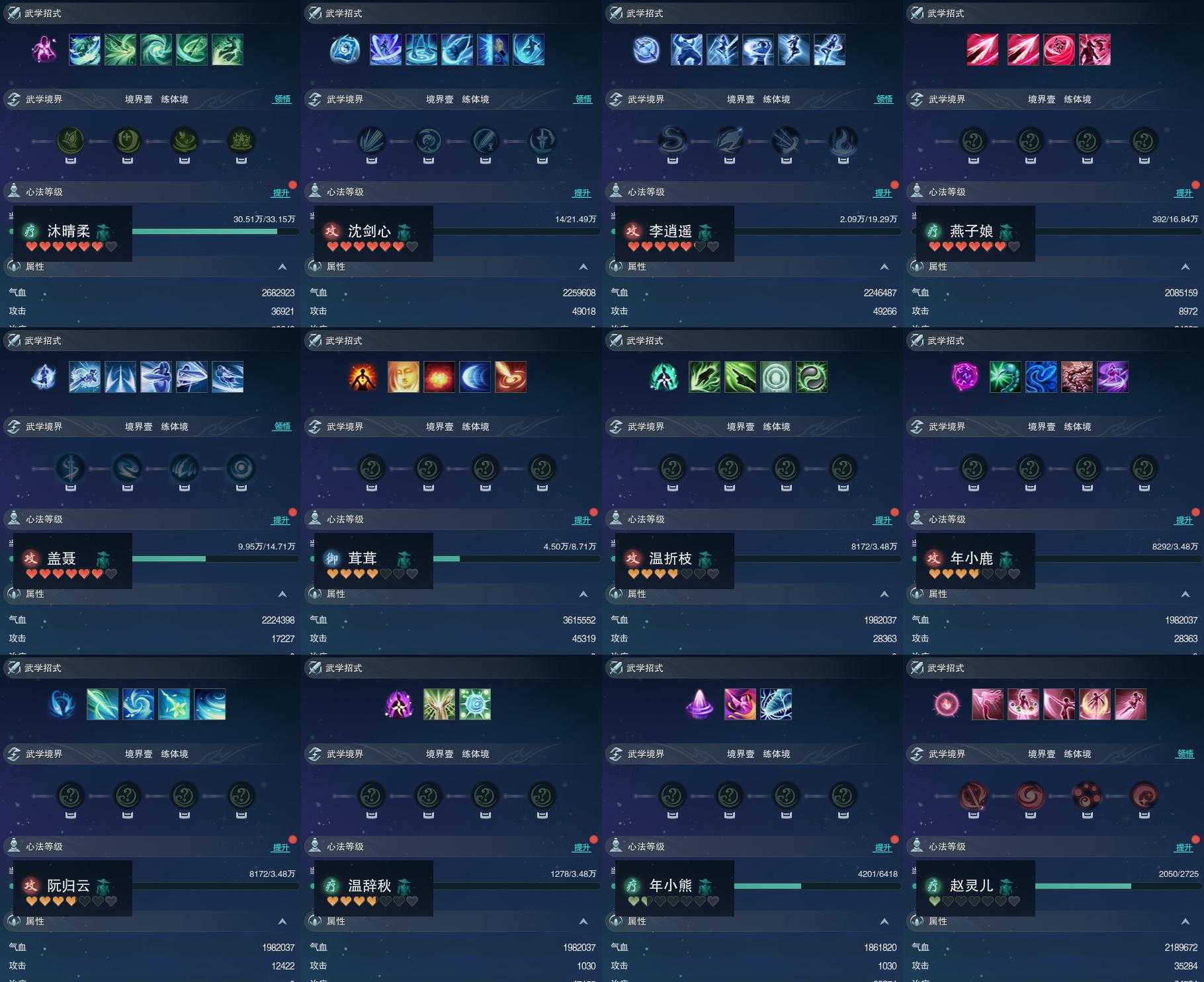 【同伴】沐晴柔76级境界壹,沈剑心74级境界壹,李逍遥72级境界壹,燕子娘71级境界壹,盖聂70级境界壹,茸茸66级境界壹,温折枝59级境界壹,年小鹿59级境界壹,阮归云59级境界壹,温辞秋59级境界壹,年小熊45级境界壹,赵灵儿36级境界壹
