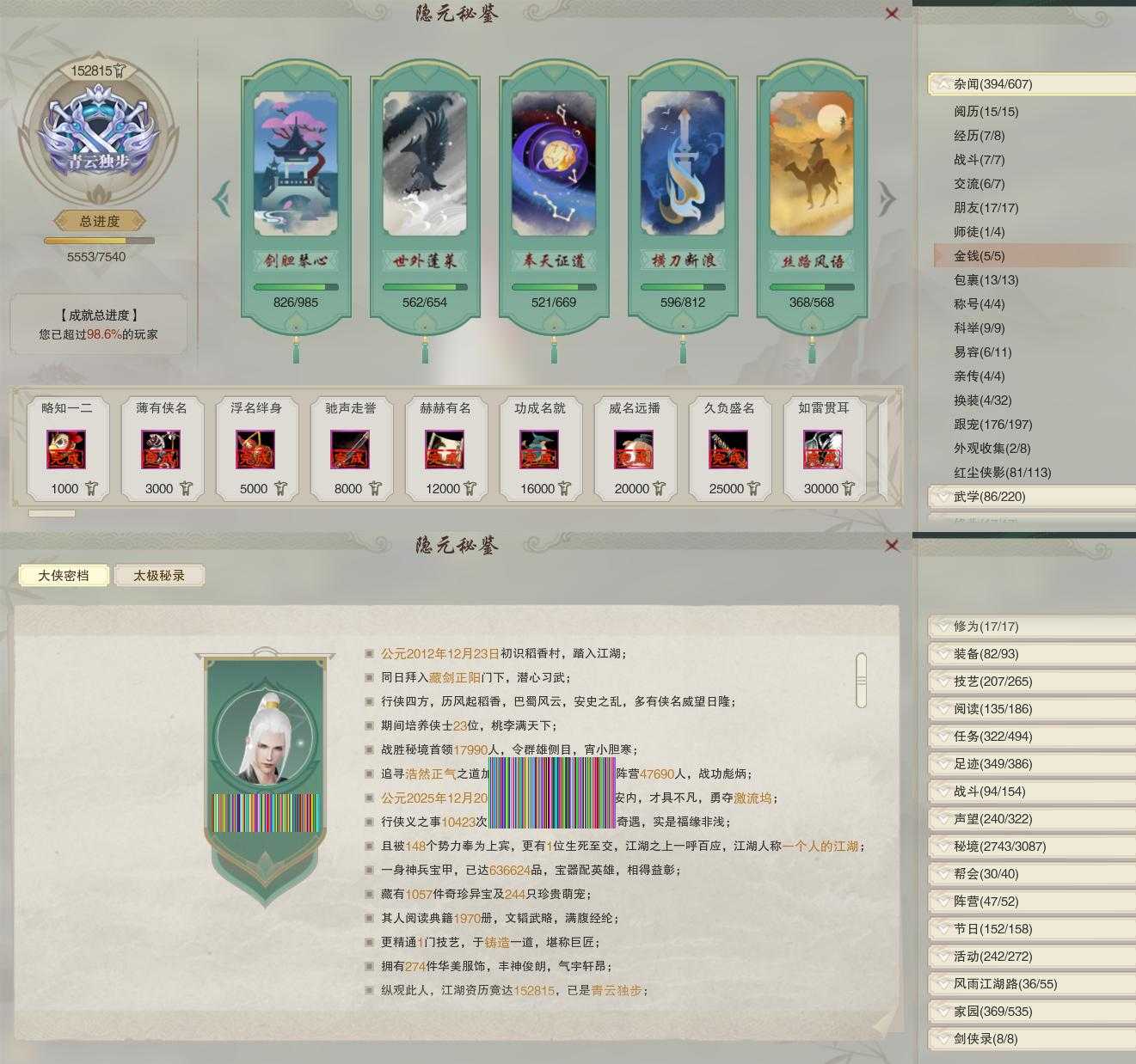 【奇遇】35个[白日梦, 天涯无归, 三山四海, 劝学记, 雪山恩仇, 阴阳两界, 兔江湖, 平生心愿, 黑白路, 乱世舞姬, 塞外宝驹, 虎啸山林, 济苍生, 少年行, 故园风雨, 扶摇九天, 三尺青锋, 舞众生, 流年如虹, 清风捕王, 寻猫记, 侠行囧途, 茶馆奇缘, 庆舞良宵, 生死判, 凌云梯, 炼狱厨神, 赴九幽, 度人心, 空谷回音]