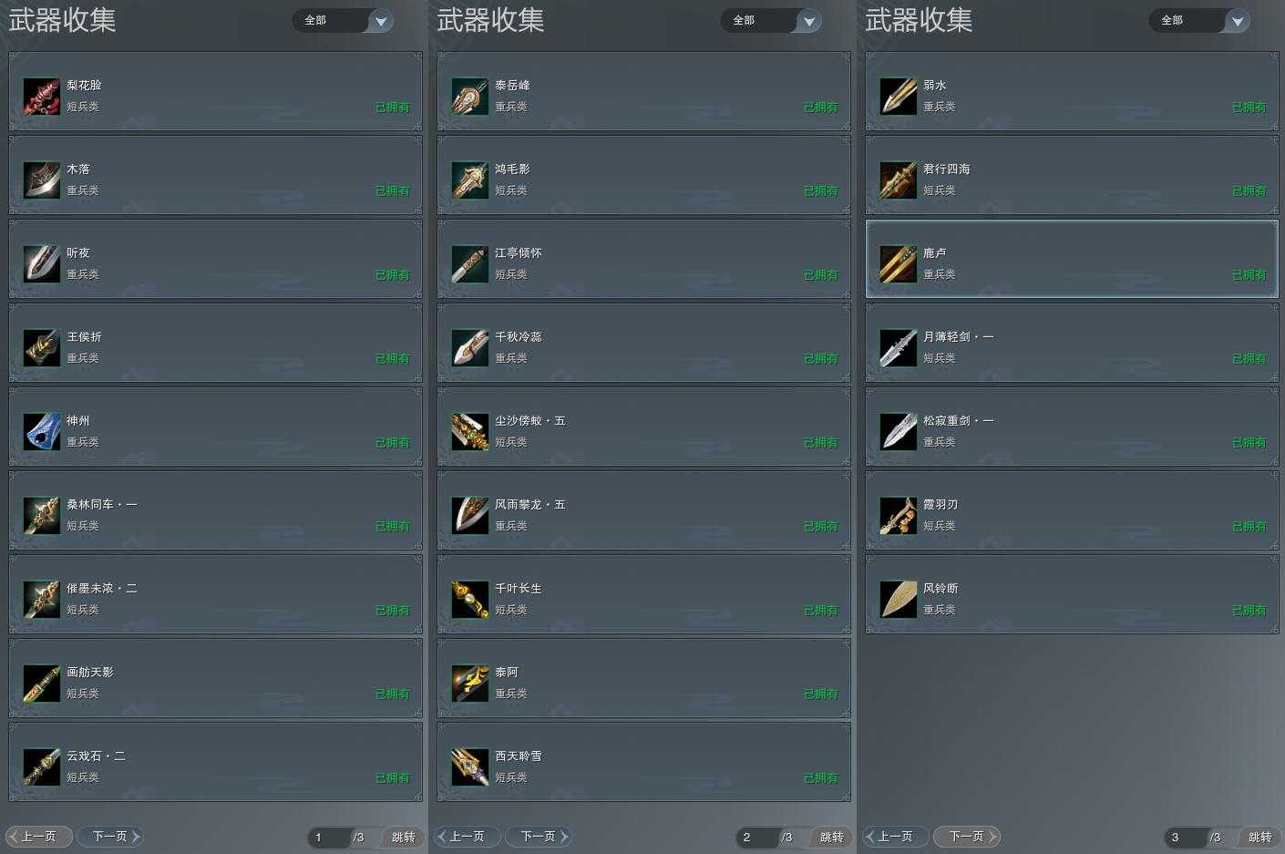 【拓印】14页外观收集,25武器拓印,拓印90小CW尘沙傍蛟,拓印90小CW风雨攀龙,拓印90CW千叶,拓印90CW泰阿,拓印95CW西天聆雪,拓印95CW弱水,拓印100CW君行,拓印100CW鹿卢