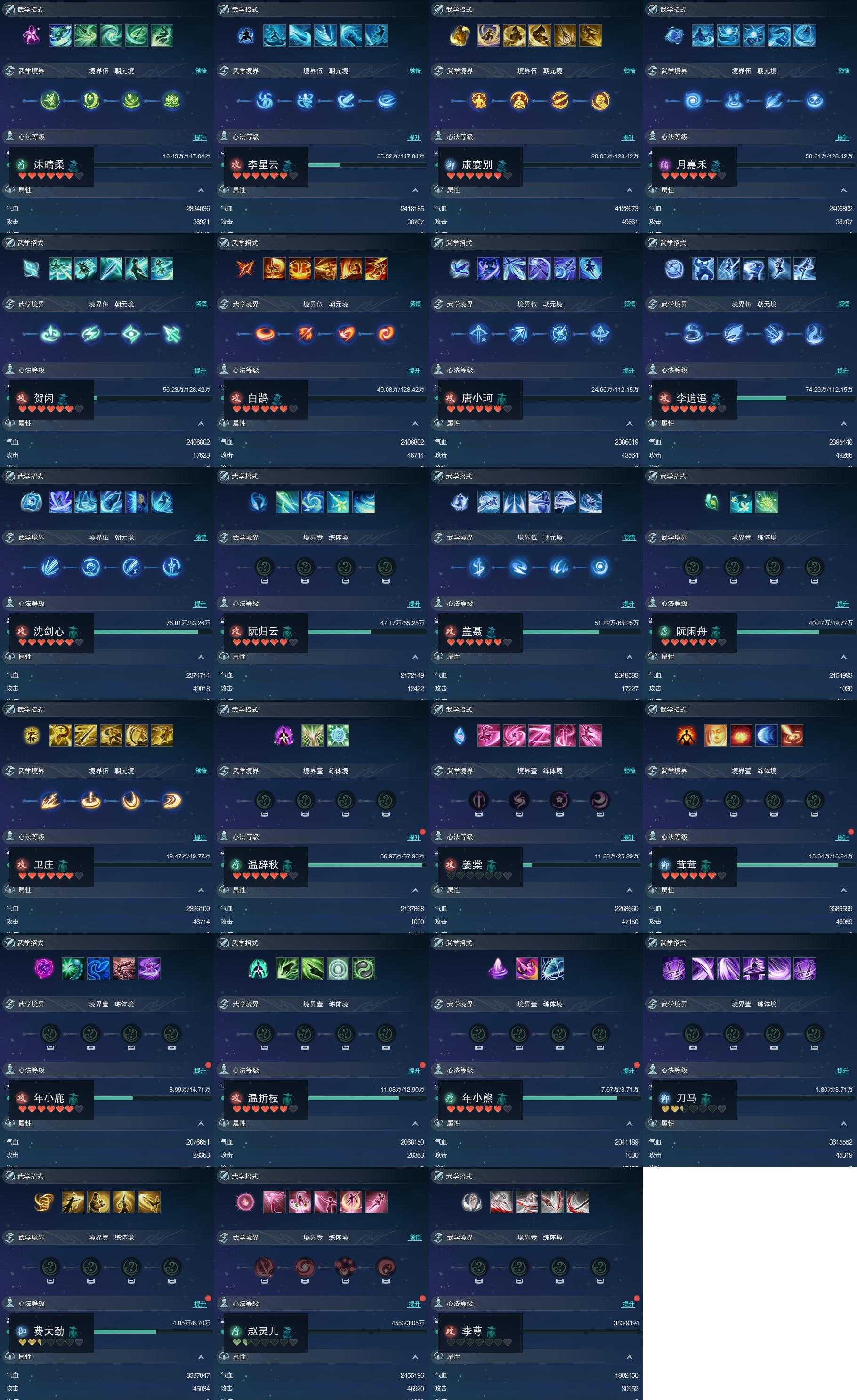 【同伴】沐晴柔87级境界伍,李星云87级境界伍,康宴别86级境界伍,月嘉禾86级境界伍,贺闲意86级境界伍,白鹊慈86级境界伍,唐小珂85级境界伍,李逍遥85级境界伍,沈剑心84级境界伍,阮归云81级境界壹,盖聂81级境界伍,阮闲舟79级境界壹,卫庄志79级境界伍,温辞秋77级境界壹,姜棠志74级境界壹,茸茸志71级境界壹,年小鹿70级境界壹,温折枝69级境界壹,年小熊66级境界壹,刀马志66级境界壹,费大劲64级境界壹,赵灵儿58级境界壹,李萼志49级境界壹