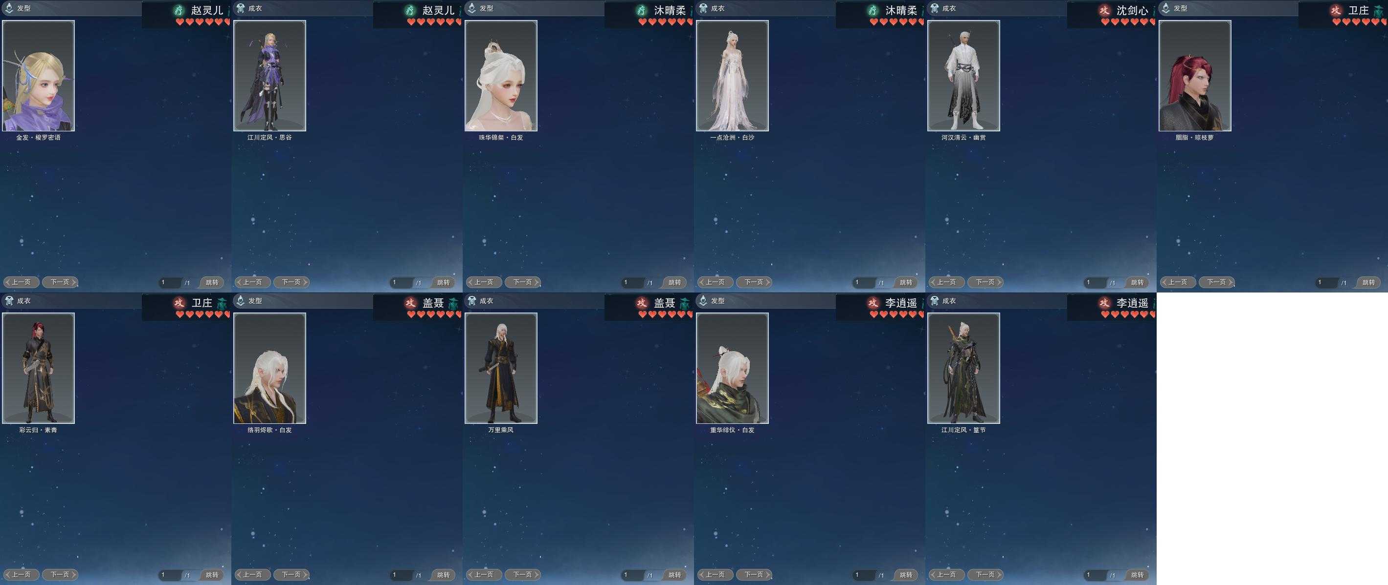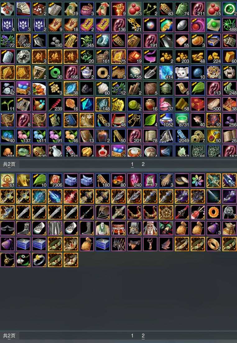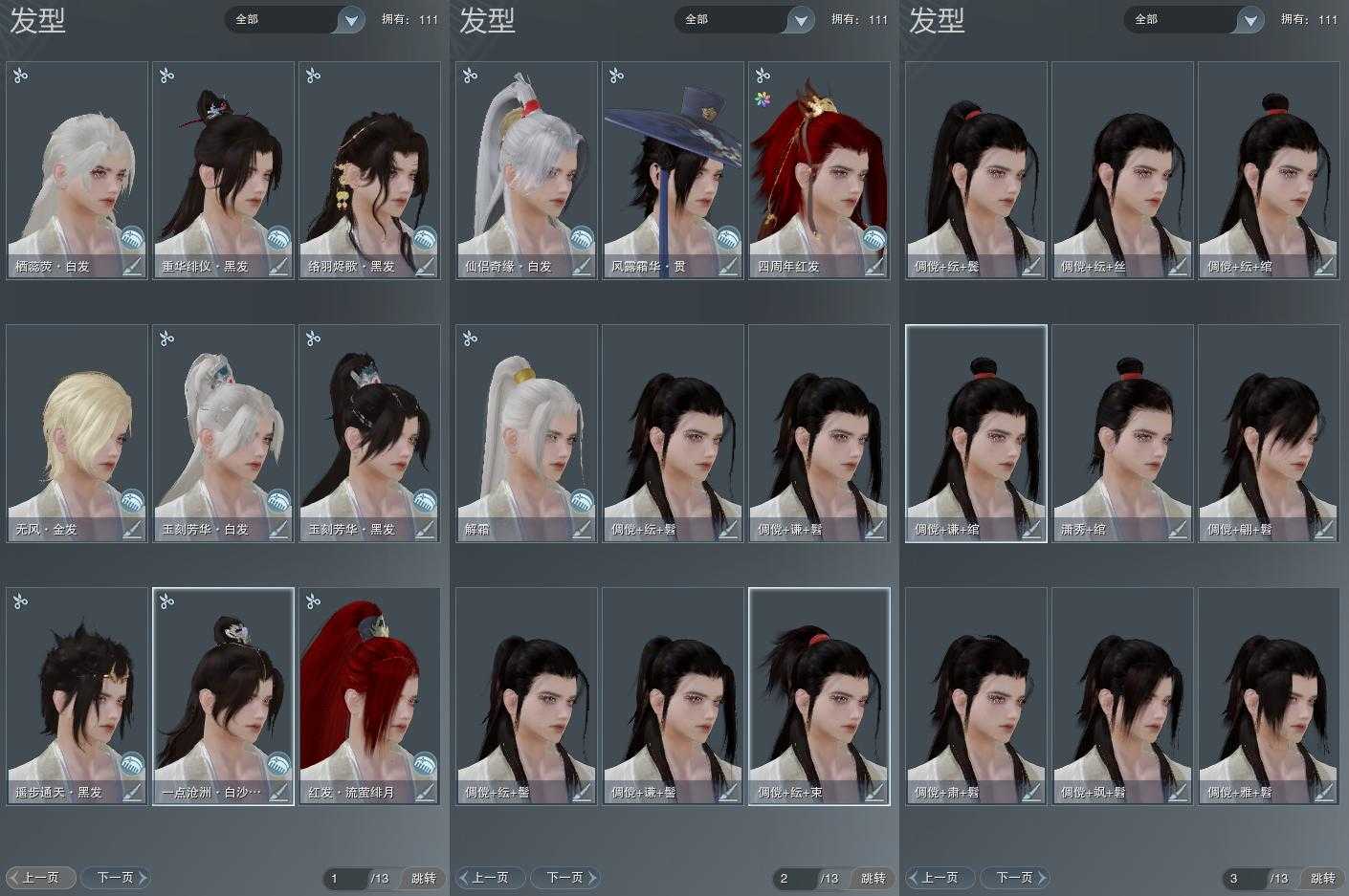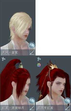 【发型】金发2个[资历金, 无风金发], 红发3个[四红, 紫发, 小资历红], 黑发6个, 白发7个, 盒子发型[紫沧洲盒黑发, 西游盒黑发, 络羽黑发, 络羽白发], 总页数3