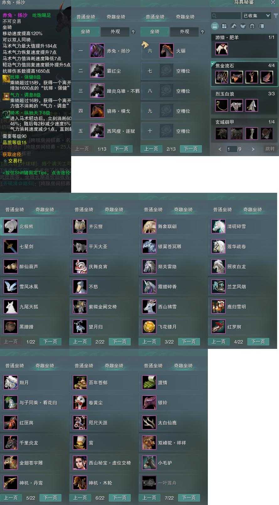 【坐骑】6个[踏炎不羁, 西风瘦逐狱, 赤兔扬沙, 骁将横戈, 霸红尘]