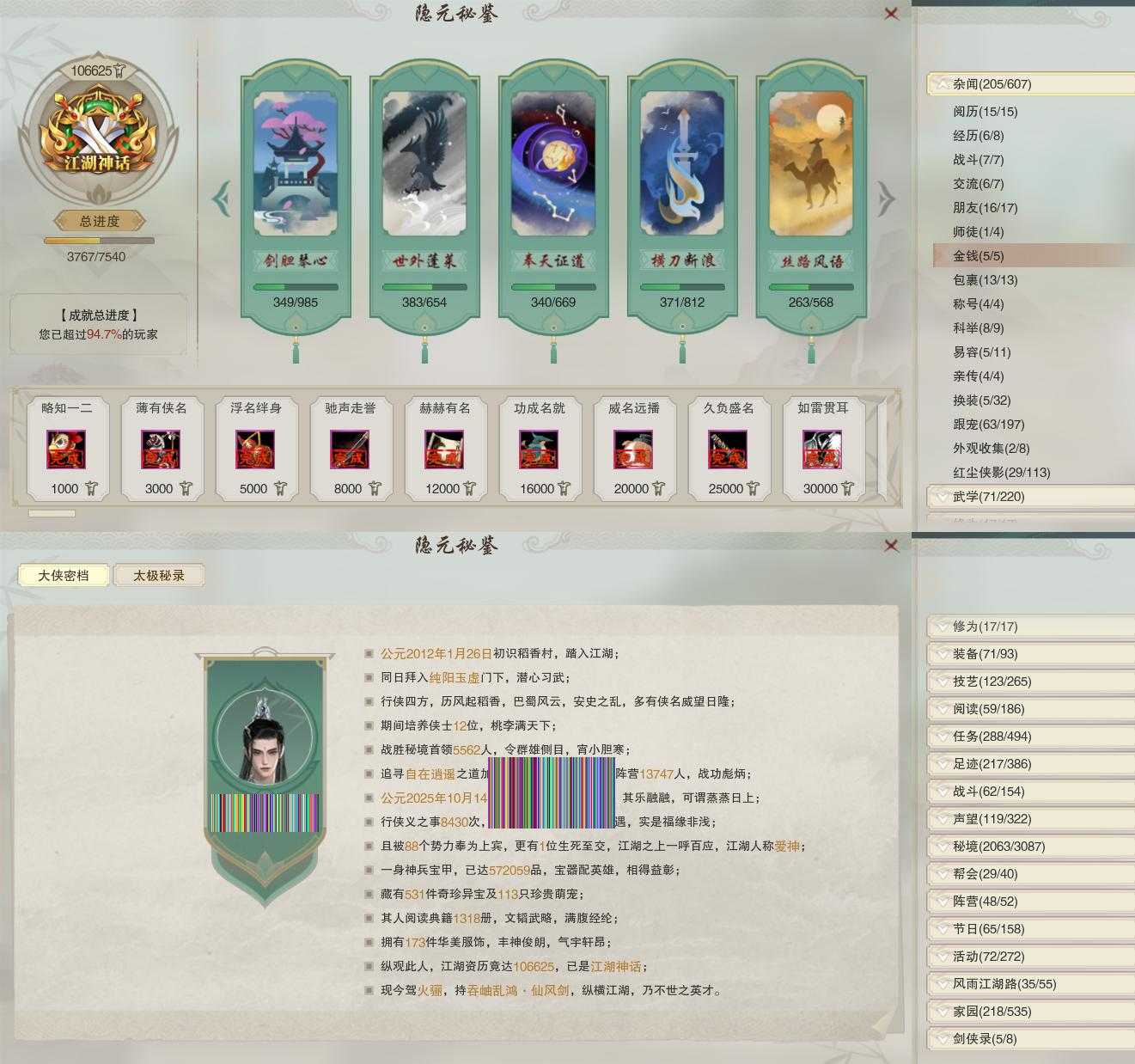 【奇遇】12个[阴阳两界, 少年行, 扶摇九天, 故园风雨, 侠行囧途, 寻猫记, 庆舞良宵, 凌云梯, 度人心, 旧宴承欢, 泛天河, 拜春擂]