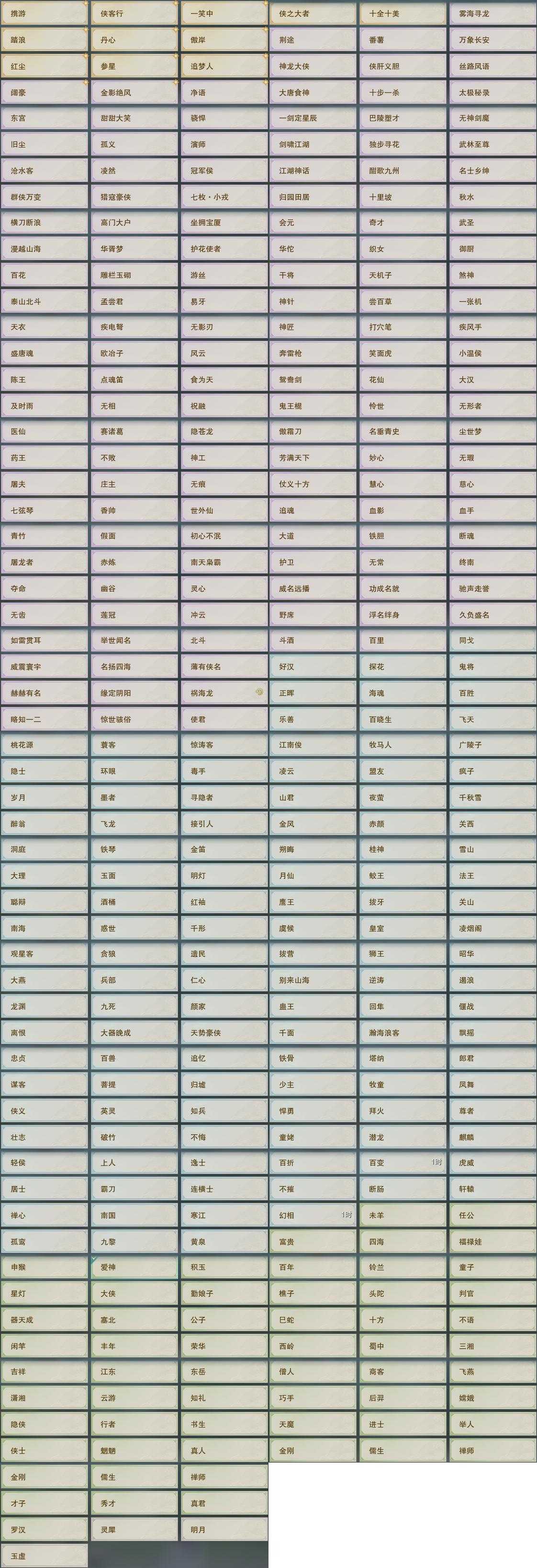 【奇珍】30个[枫林酒, 红衣歌, 归乡路, 胜负局, 孩童书, 捉妖记, 至尊宝, 石敢当, 滇南行, 青草歌]