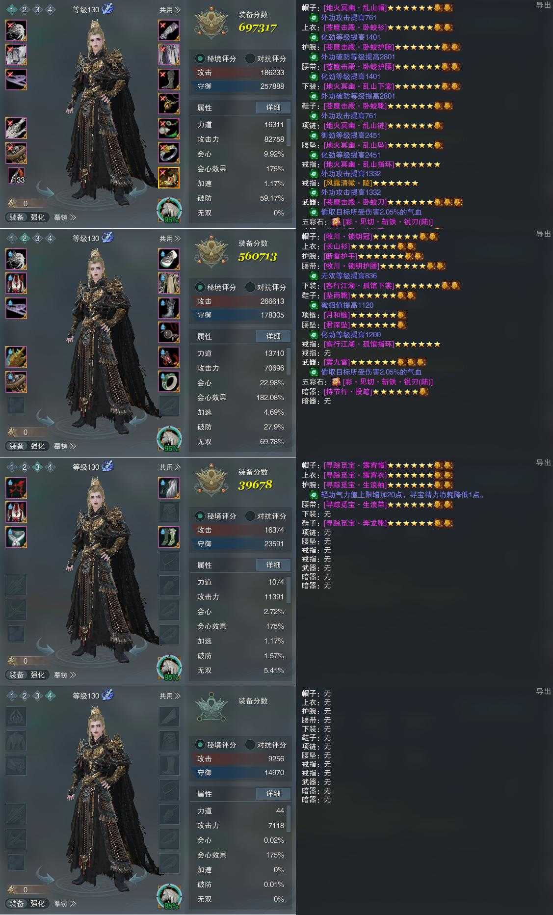 【装备】130级,北傲诀PVP697317,北傲诀PVE560713,装备三39678,装备四0