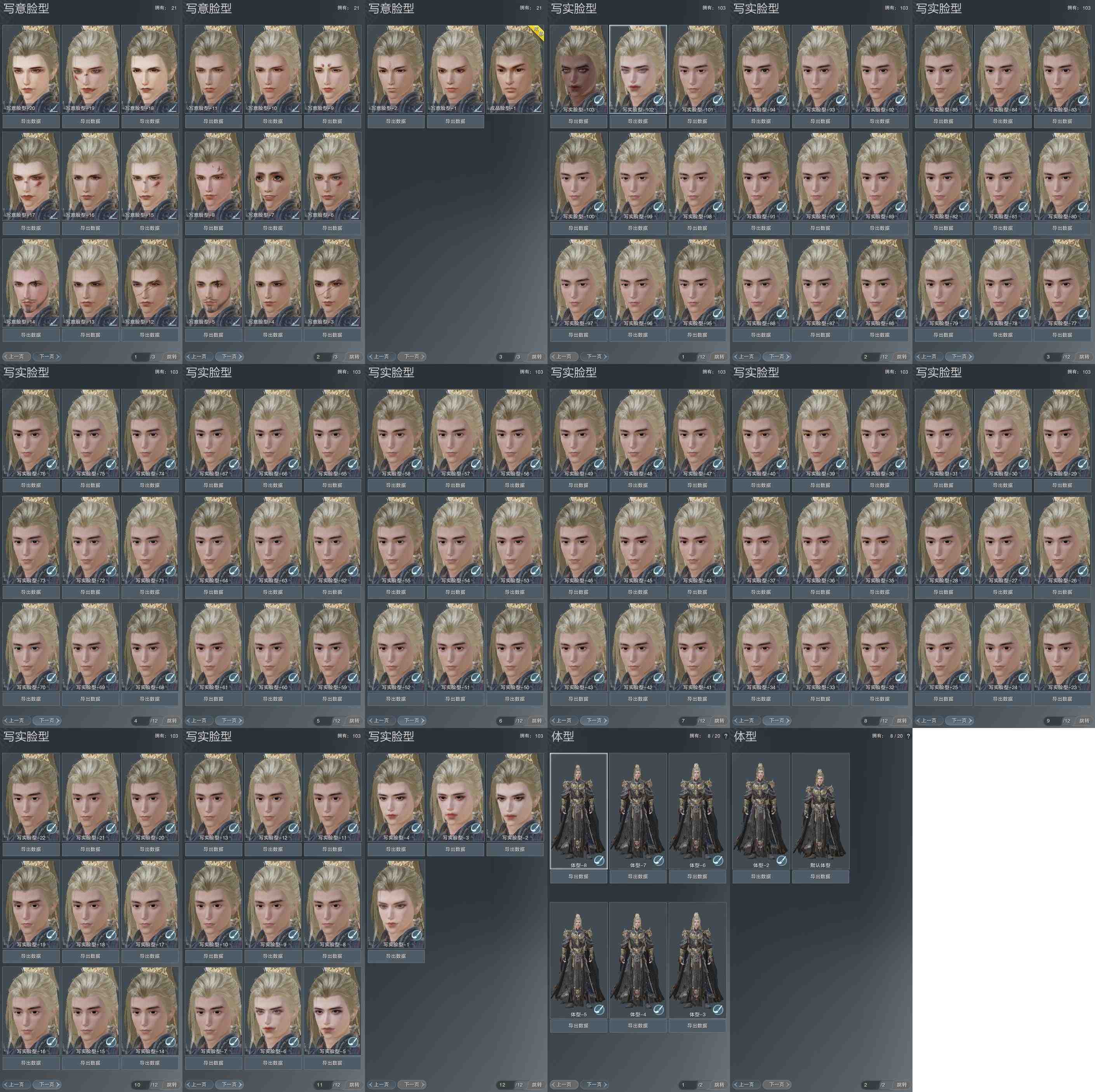 【捏脸】写意脸型21个,写实脸型103个,体型8个