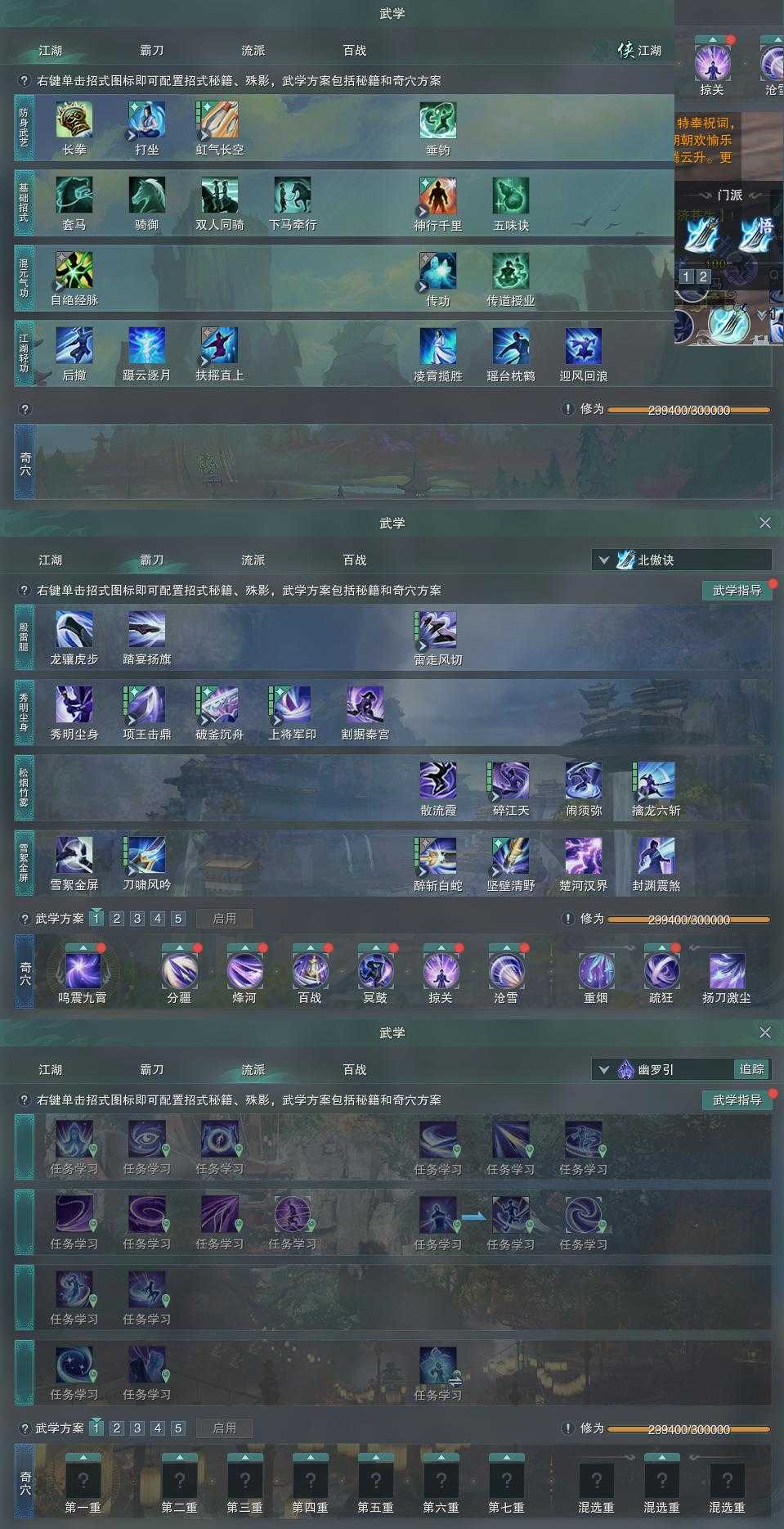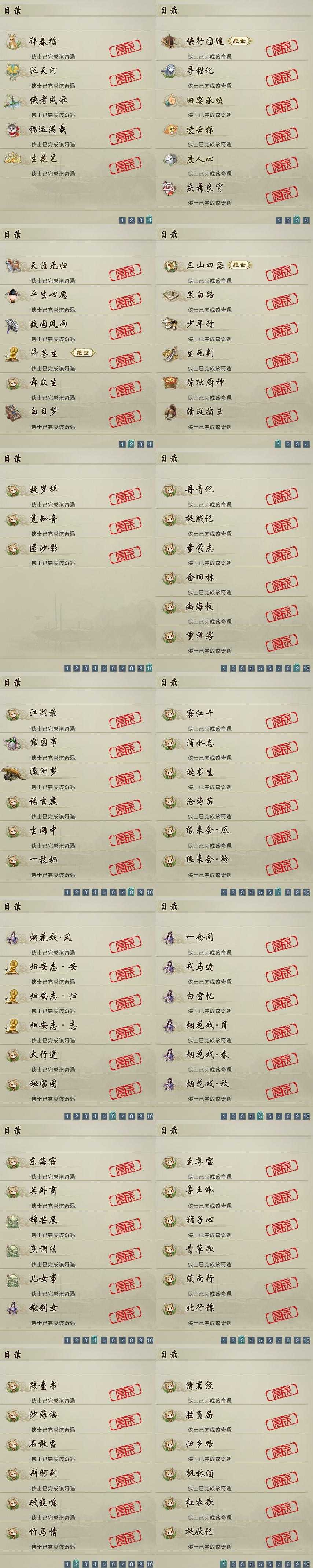 【奇遇】23个[天涯无归, 白日梦, 三山四海, 平生心愿, 黑白路, 济苍生, 少年行, 故园风雨, 舞众生, 清风捕王, 侠行囧途, 寻猫记, 庆舞良宵, 生死判, 凌云梯, 炼狱厨神, 度人心, 旧宴承欢, 泛天河, 侠者成歌, 拜春擂, 福运满载, 生花笔]