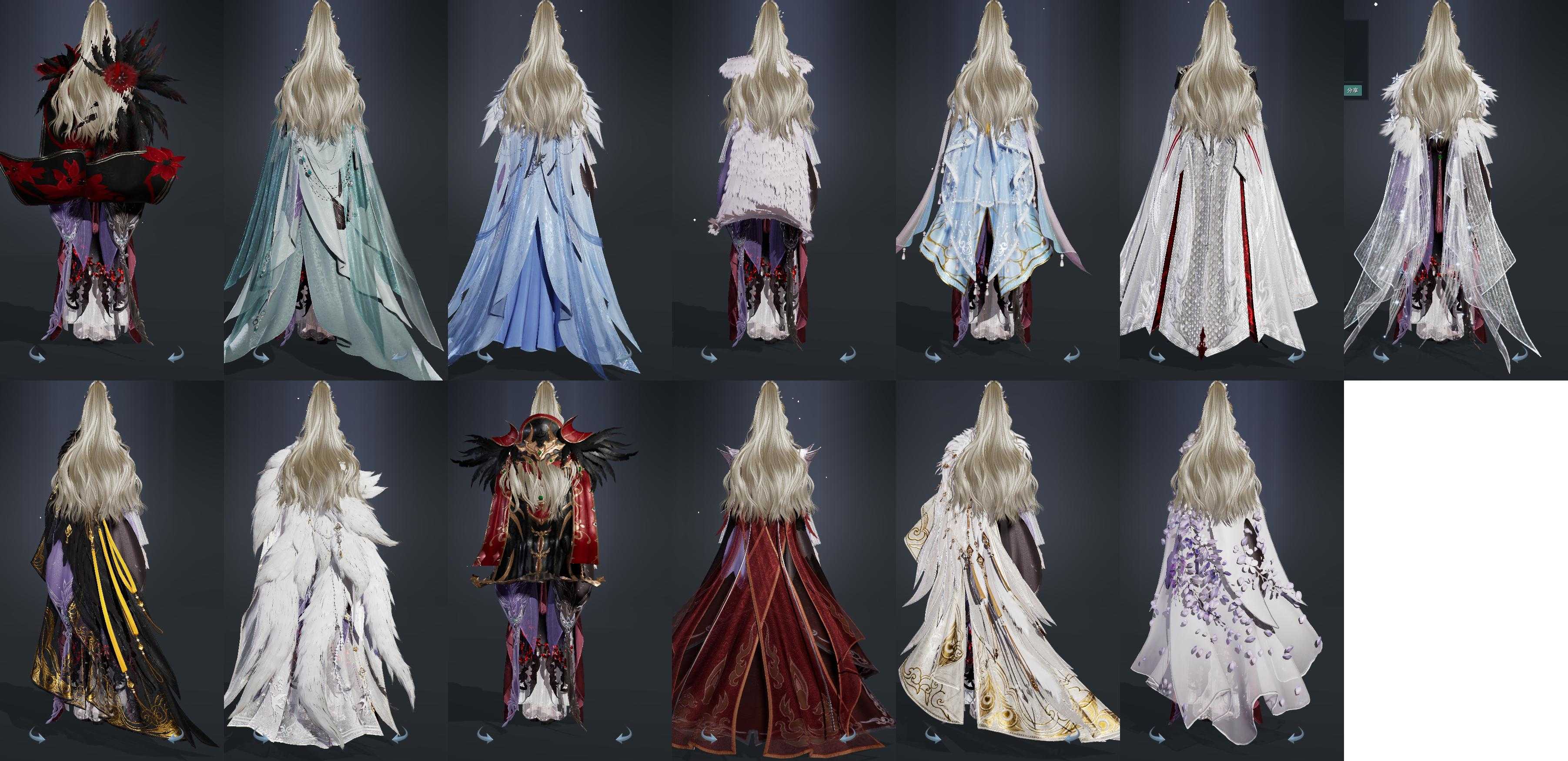 单盒成衣:[白如归衣, 蓝玲珑衣, 白菩提衣, 旗袍衣, 白凤舞衣, 红凤舞衣, 黑凤舞衣, 粉凤舞衣, 沧海衣, 黑红尘衣, 白游园衣, 黑明光衣, 芙蓉盒衣, 红竹影衣, 红懒猪衣, 白忘川衣, 红人间盒衣, 红雨山衣, 七七盒衣, 七中白盒衣, 黑幽昙衣, 蓝沧洲盒衣, 粉沧洲盒衣, 紫沧洲盒衣, 紫幽馥衣替, 黄千山衣]