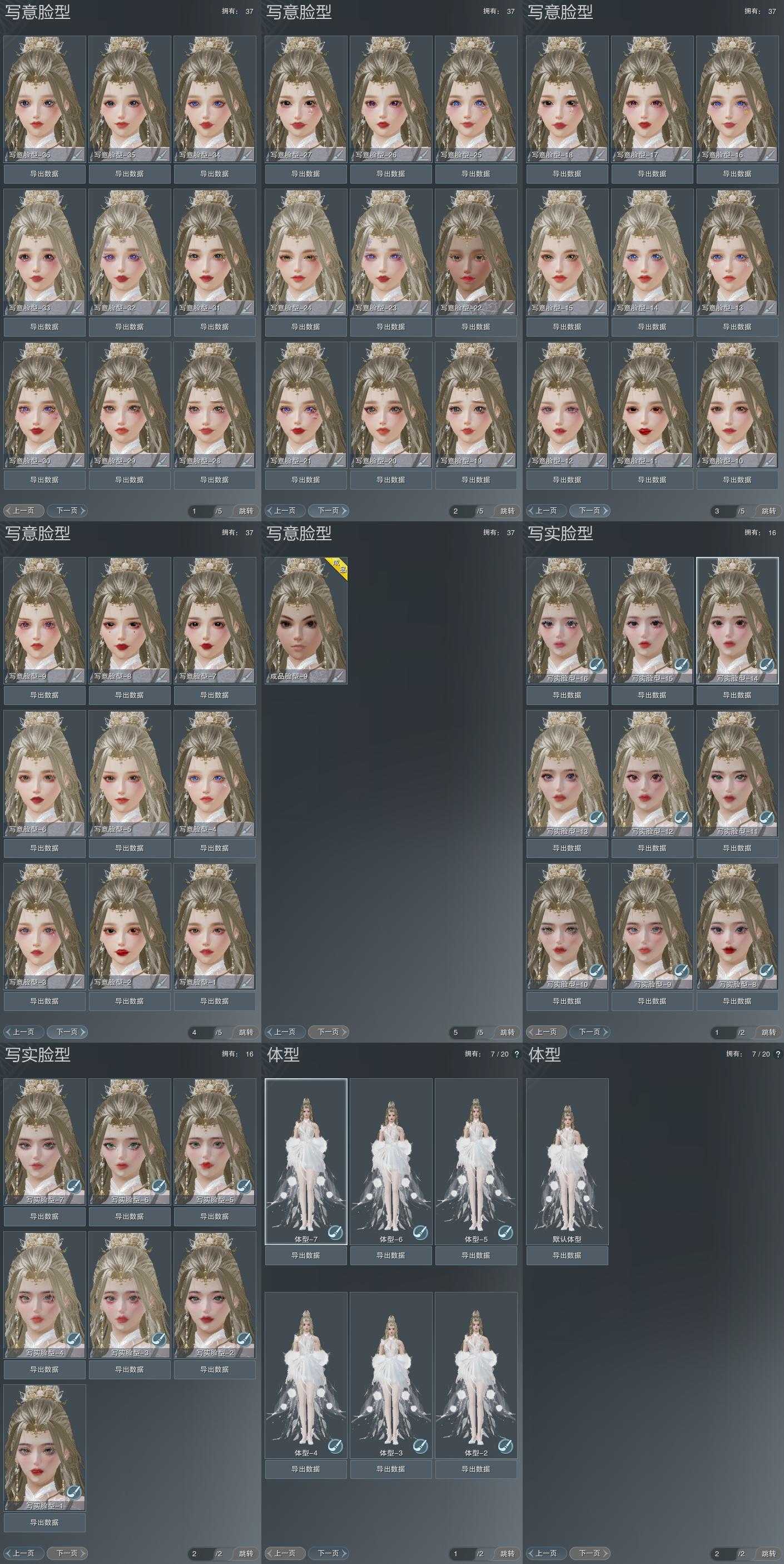 【捏脸】写意脸型37个,写实脸型16个,体型7个