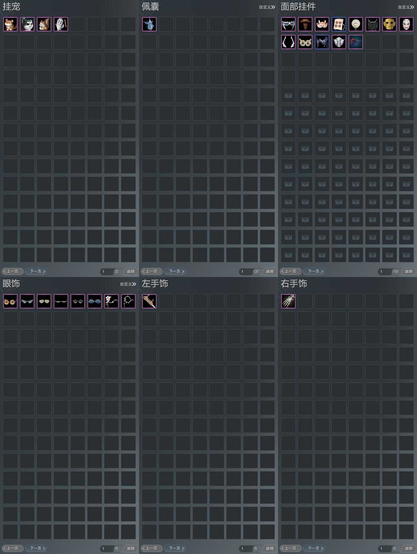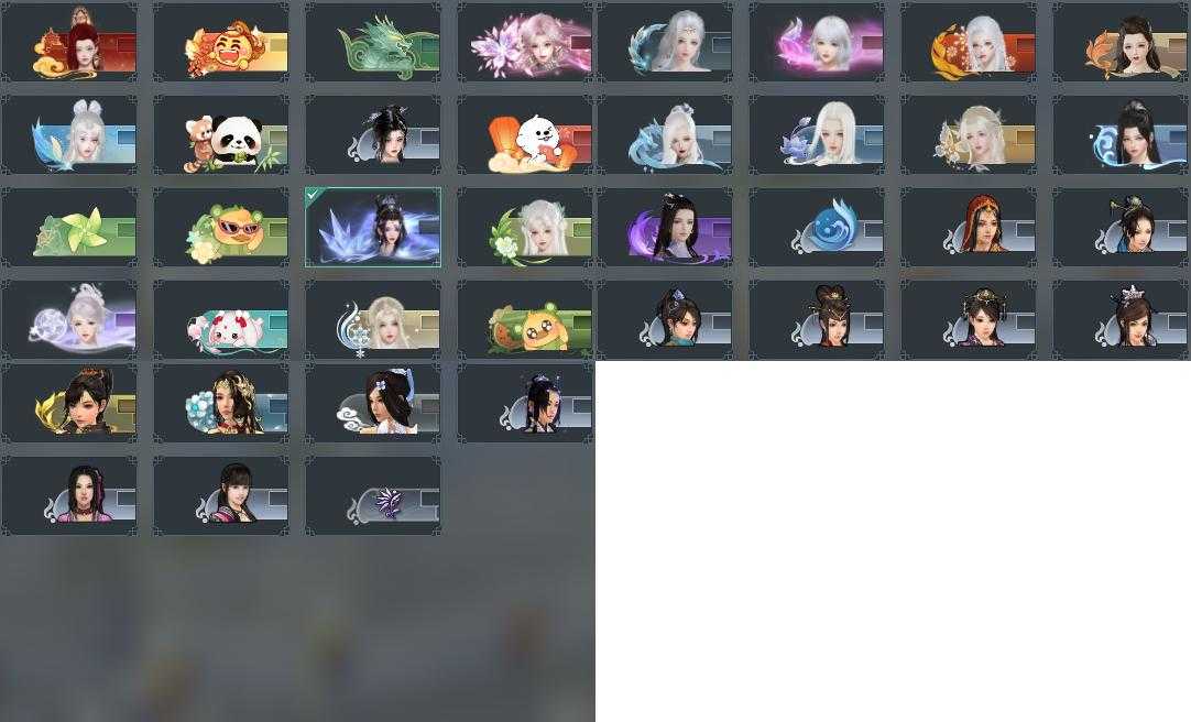 盒子:[丝路盒, 蓝曲塘盒(缺背挂), 金凤舞盒(豪), 唐风玉壶盒(缺背挂), 原色桃花盒, 绿游园(豪), 竹笛盒(缺背挂), 龙吟盒, 白海岛(豪), 蓝水袖盒(缺背挂), 黑竹影(标), 花滑盒, 粉忘川盒, 黑懒猪(标), 山神盒, 兔盒, 蓝钻盒, 灵龙盒, 黑沧州盒(标), 白幽昙(标), 策二盒, 西游盒, 八七盒, 黑椿山盒(标), 白幽馥(标), 黑幽馥(标), 游龙盒, 婚纱盒, 熊猫盒(缺背挂), 梦盒, 九七盒, 青蛇盒, 白蛇盒, 镰刀盒, 仙剑盒, 白鹭盒(豪)(缺黑发), 黄上火(标), 白陇西(豪), 粉毛衣(豪)]