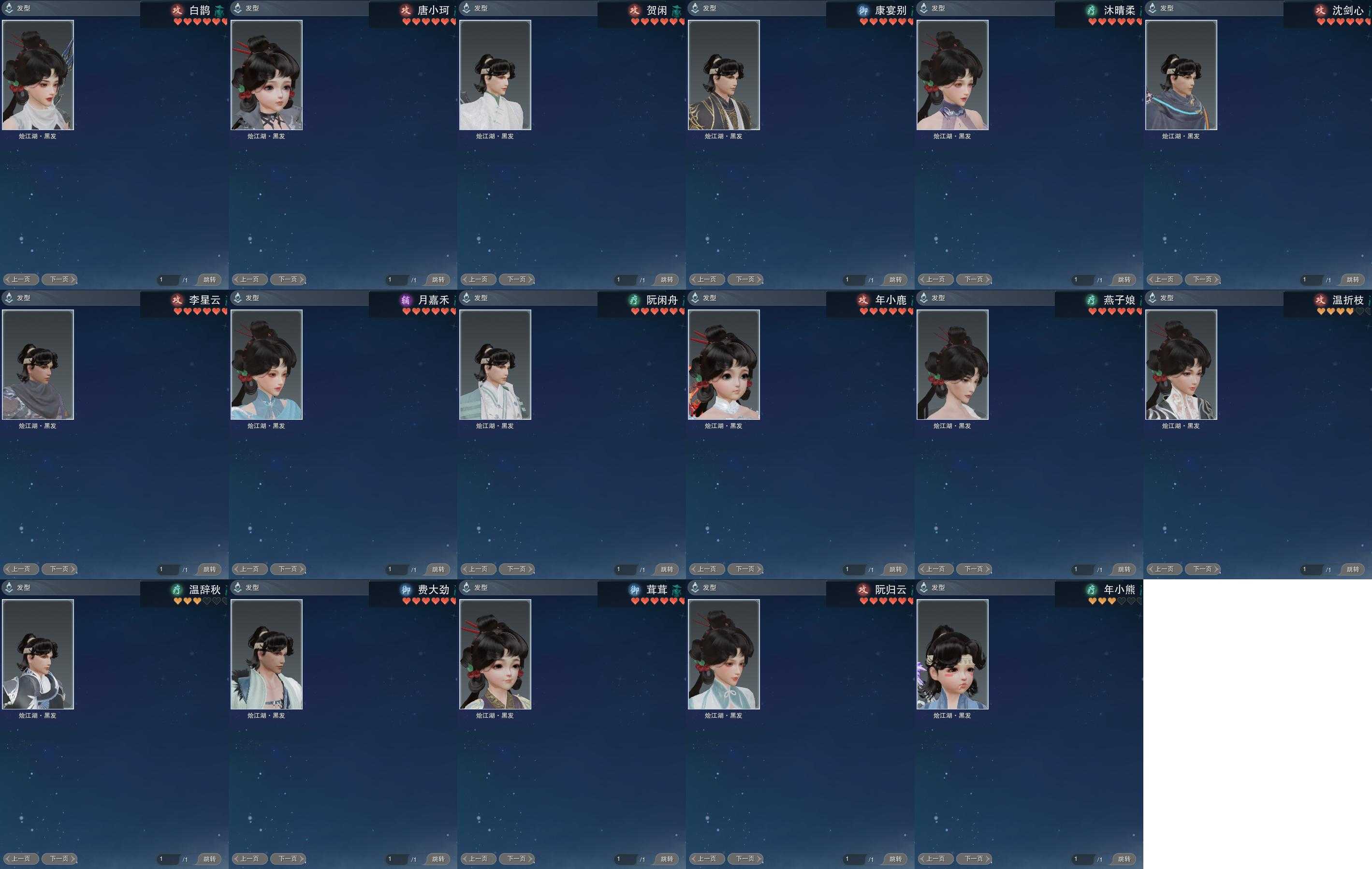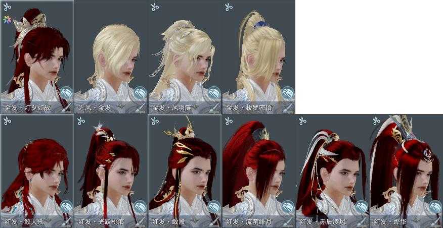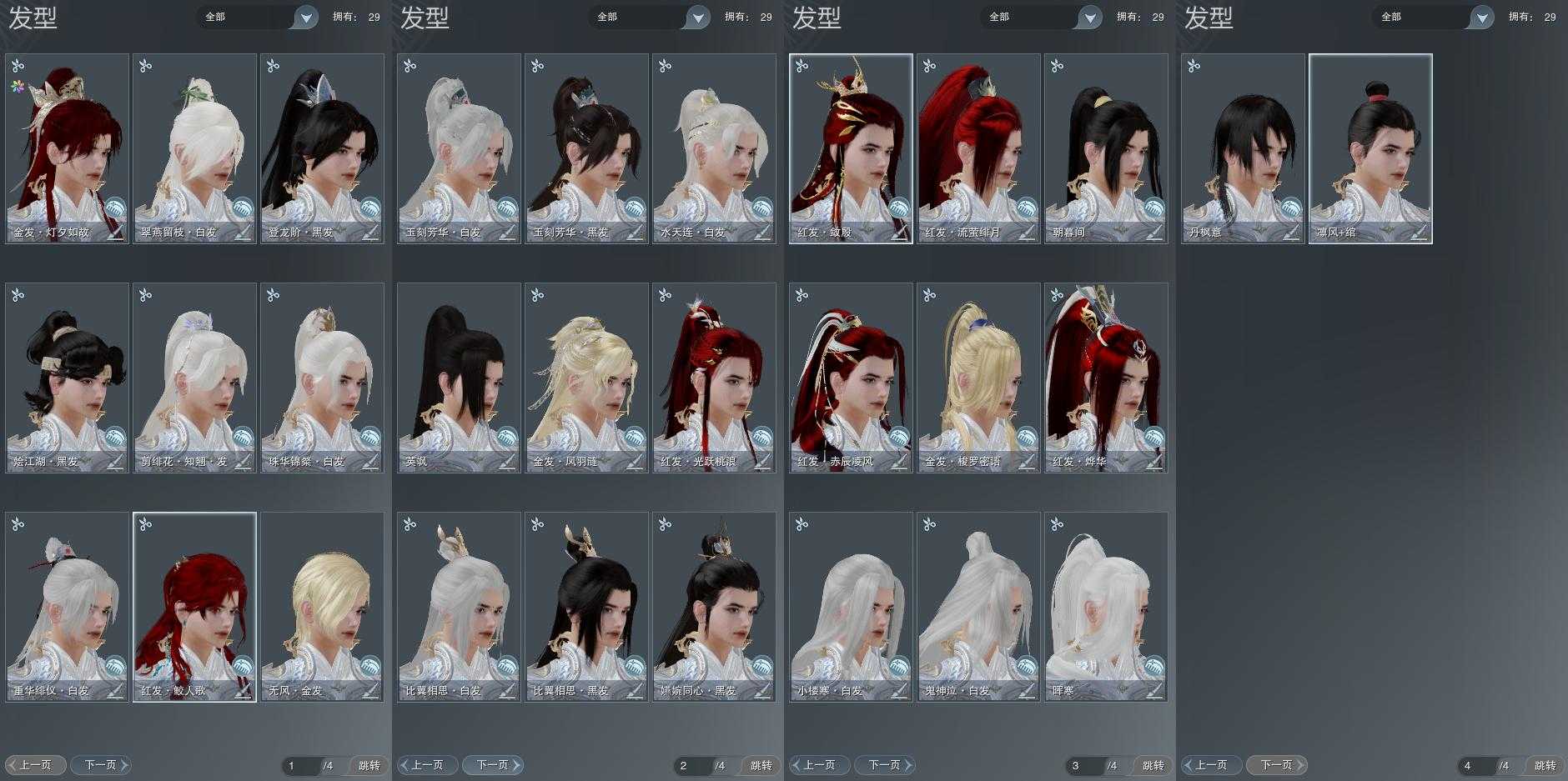 【发型】金发4个[资历金, 凤金, 无风金发, 马金], 红发6个[七红, 八红, 十一红, 猪红, 小资历红, 十五红], 黑发8个, 白发10个, 盒子发型[四代七夕黑发, 五代七夕黑发, 五代七夕白发], 总页数4