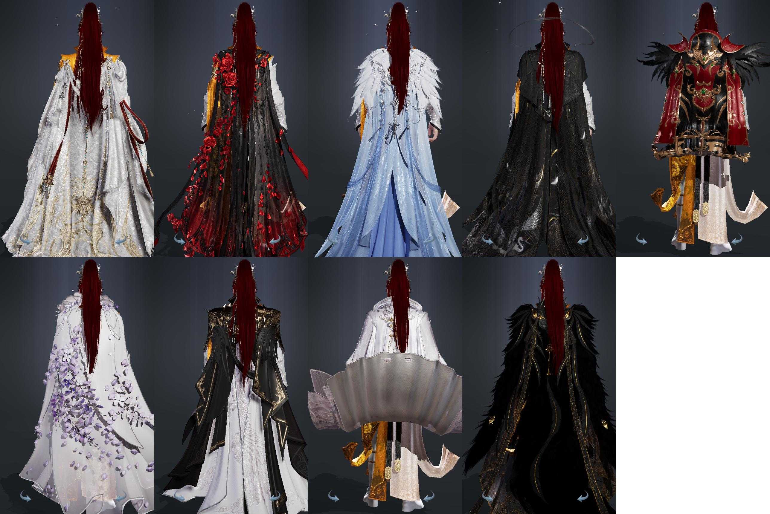 【披风】10个,[7W资历披风, 衍天预热披风, 奇遇披风, 云岚盒披风, 咩盒披风, 白赵云披风, 黑狐裘, 空山闲雪, 赤庭葳蕤]