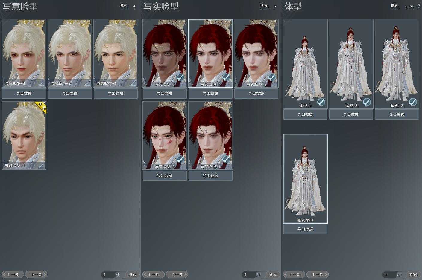 【捏脸】写意脸型4个,写实脸型5个,体型4个