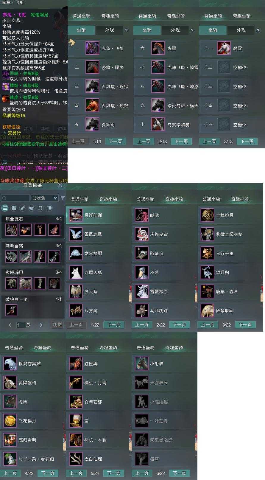 【坐骑】11个[踏炎横天, 赤珠惊雷, 西风瘦烛银, 西风瘦逐狱, 赤珠燎原, 劲足赤兔飞虹, 骁将骊少, 乌鬃踏焰驹]