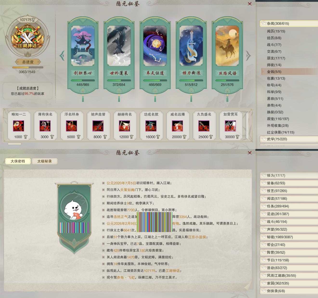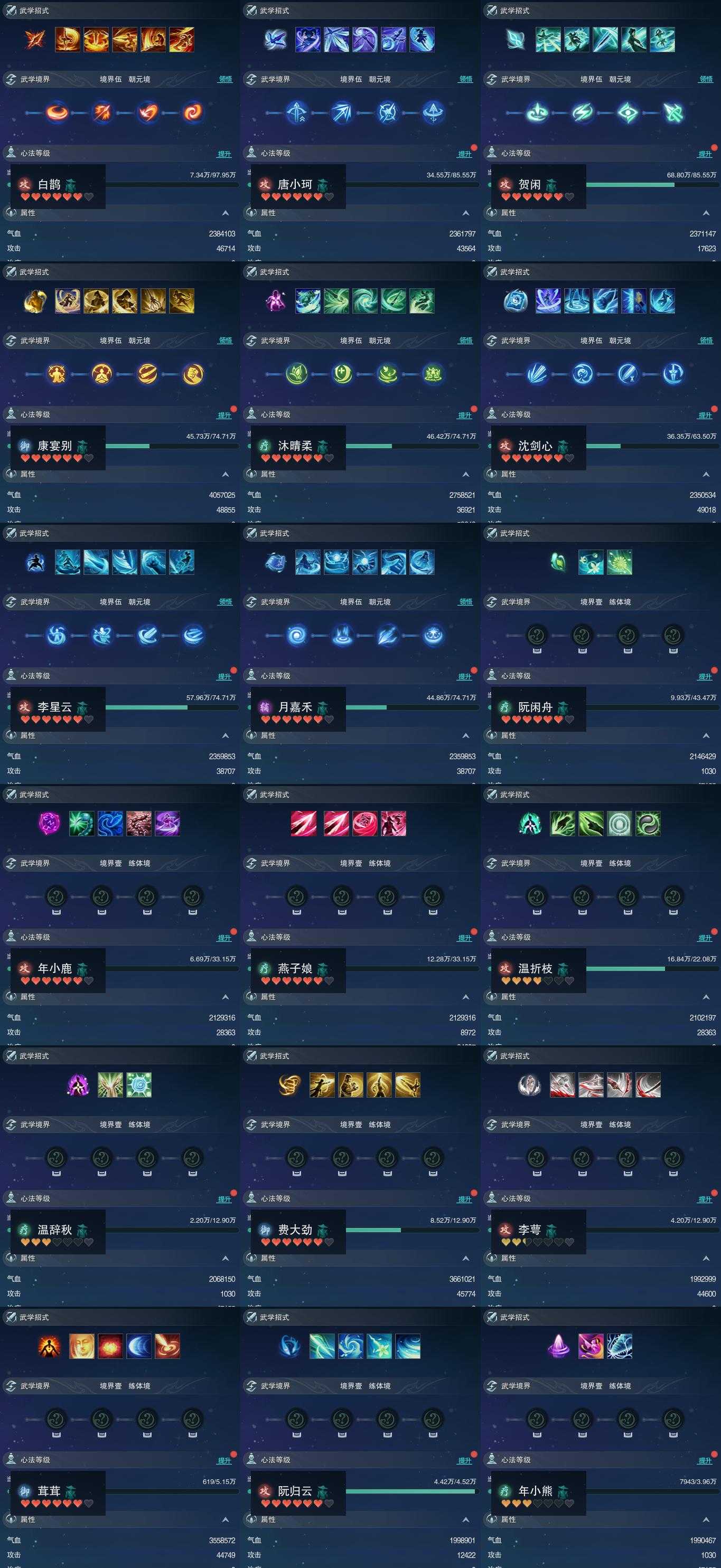 【同伴】白鹊志84级境界伍,唐小珂83级境界伍,贺闲志83级境界伍,康宴别82级境界伍,沐晴柔82级境界伍,沈剑心82级境界伍,李星云82级境界伍,月嘉禾82级境界伍,阮闲舟78级境界壹,年小鹿76级境界壹,燕子娘76级境界壹,温折枝73级境界壹,温辞秋69级境界壹,费大劲69级境界壹,李萼志69级境界壹,茸茸志62级境界壹,阮归云61级境界壹,年小熊60级境界壹