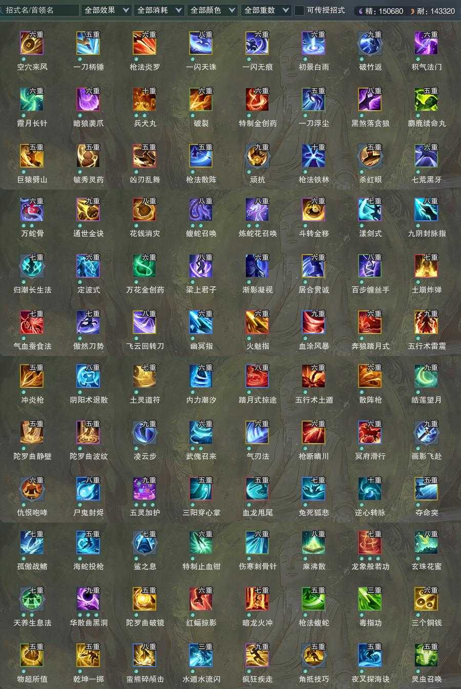 【橙武】(仅本门派)[120小铁*123, 130小铁*17, 100玄晶*1, 110小铁*221, 100小铁*79, 95小铁*57, 90小铁*53, 80小铁*189, 70小铁*166, 120CW旷野孤疆, 门派特效炎枪重黎]